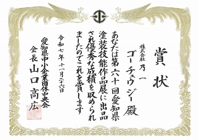 ホーム > News > 愛知県中小企業団体中央会様より賞状をいただきました